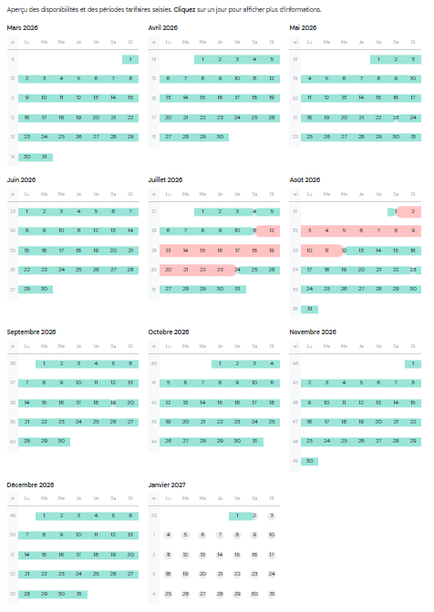 Si vous souhaitez comparer le tarif ou les disponibilités, rendez-vous sur notre page booking (lien ci-contre)